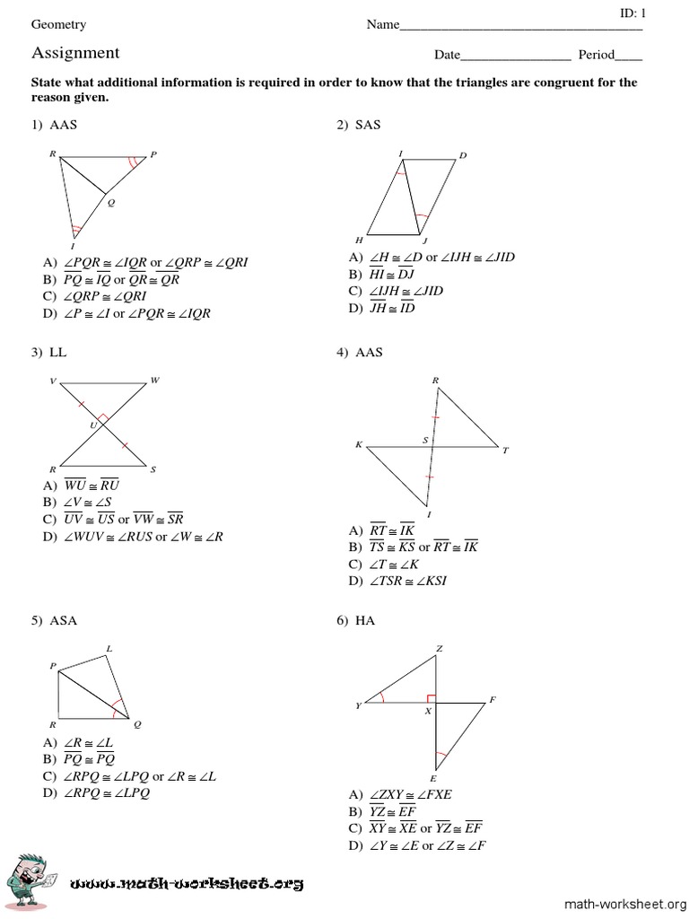 T 12/9 6.1 ratios, proportions and geometric mean. Mar 02, 2021 · homeimprovementhouse: List all the angles that would be congruent to k. Th 12/11 6.4 prove triangles similar by aa. 6.3 use similar polygons worksheet 6.2 and 6.3 12 w 12/10. Q, b, e, p, t, g, d 6. Free calculus tutor more cool math games google spreadsheet functions simple addition facts grade 8 pythagorean theorem worksheets christmas puzzles to print math proof problems 5th grade. Name all the angles that would be congruent to c if and only if lines e and f are parallel. In particular, the lesson will help you identify and help students who have difficulty: Jan 04, 2013 · a comprehensive database of more than 20 angle quizzes online, test your knowledge with angle quiz questions. An equilateral triangle is a triangle with all three sides of equal length , corresponding to what could also be known as a regular triangle.an equilateral triangle is therefore a special case of an isosceles triangle having not just two, but all three sides equal. 4.9/5.0 satisfaction rating over the last. Congruent triangles on the coordinate plane.